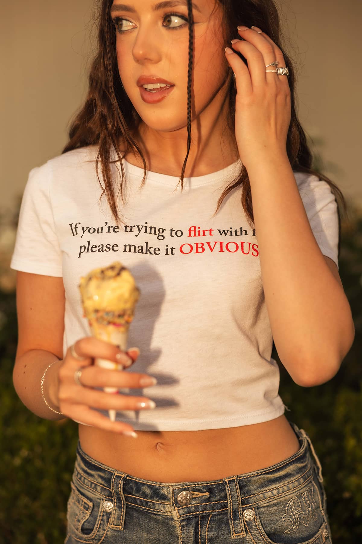 Cropped, buttery-soft baby tee says what your face is tired of repeating: make it obvious. High-quality cotton blend with a snug fit and flirty stretch. Dress it up, down, or dangerously.